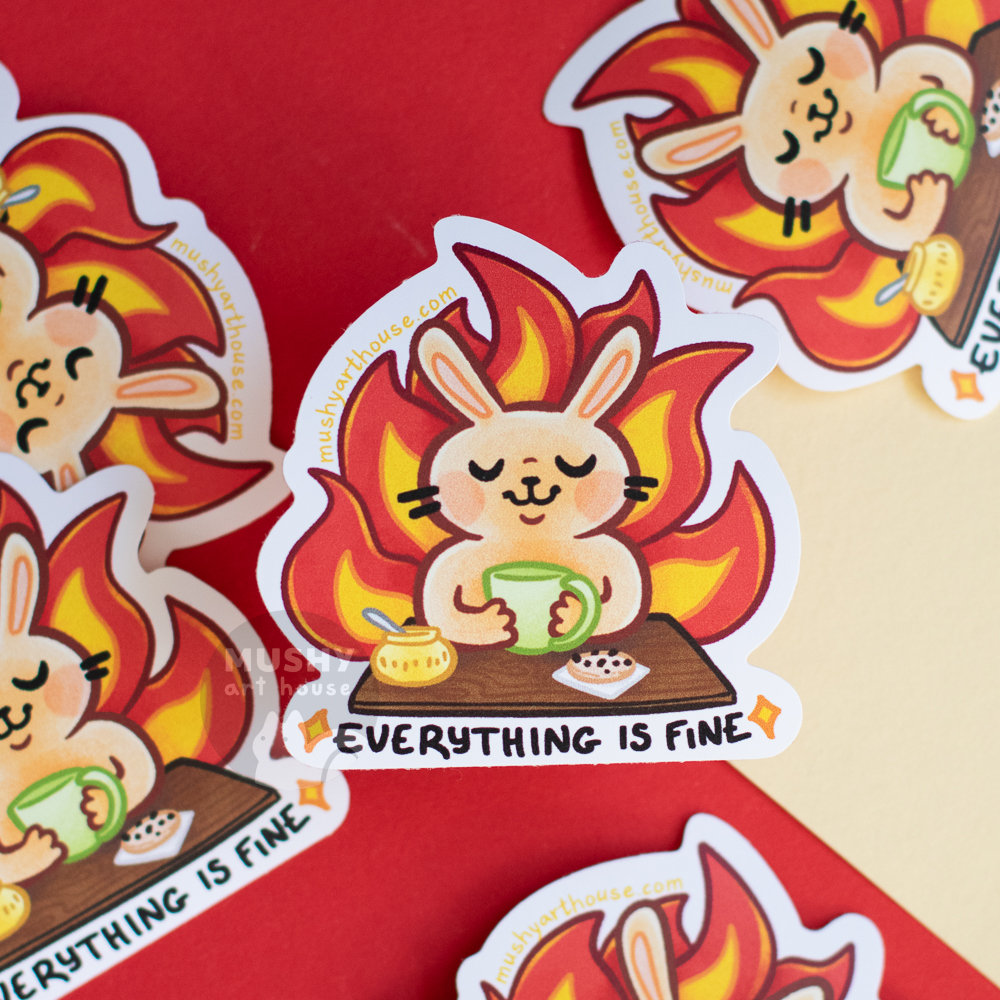 Everything Is Fine Bunny Sticker