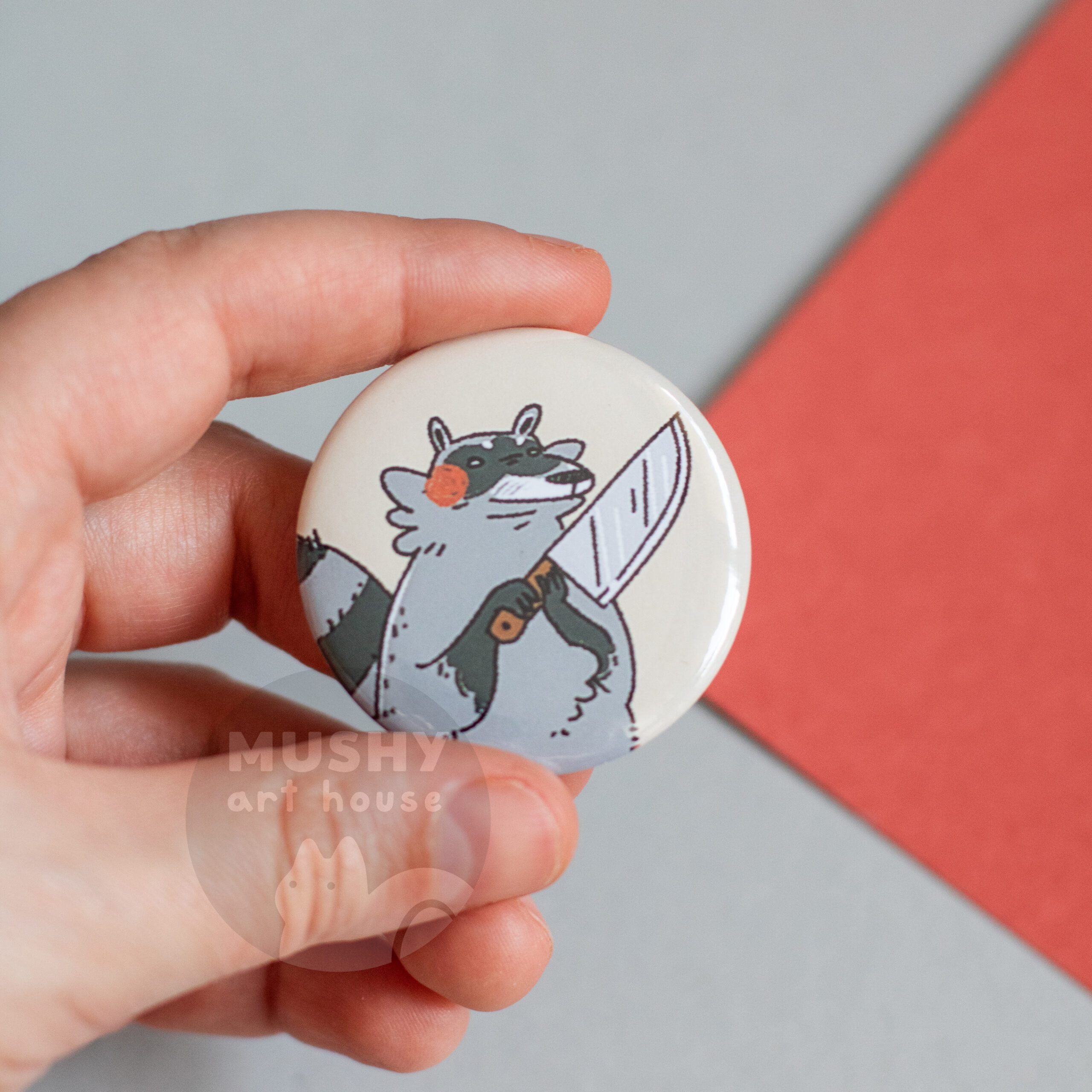 Knife Raccoon Pin Button